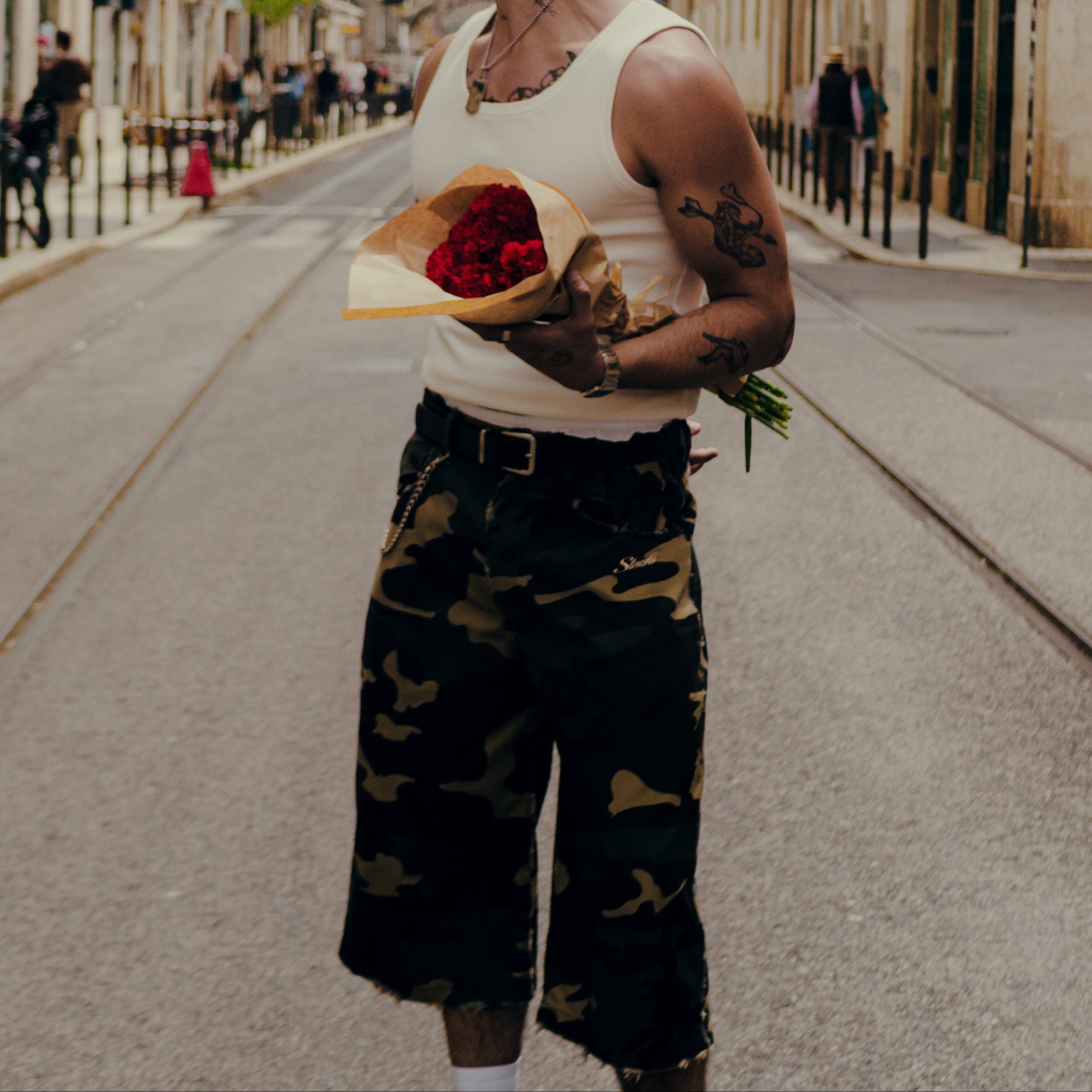 Camo uniform reimagined. These baggy-fit shorts are our take on a piece once made to blend in - now redesigned to stand out. Unapologetically loud, they flip the meaning of military camo: not to hide, but to be seen. With a relaxed and oversized cut for the most freedom. Featuring embroidery and a destroyed finish.